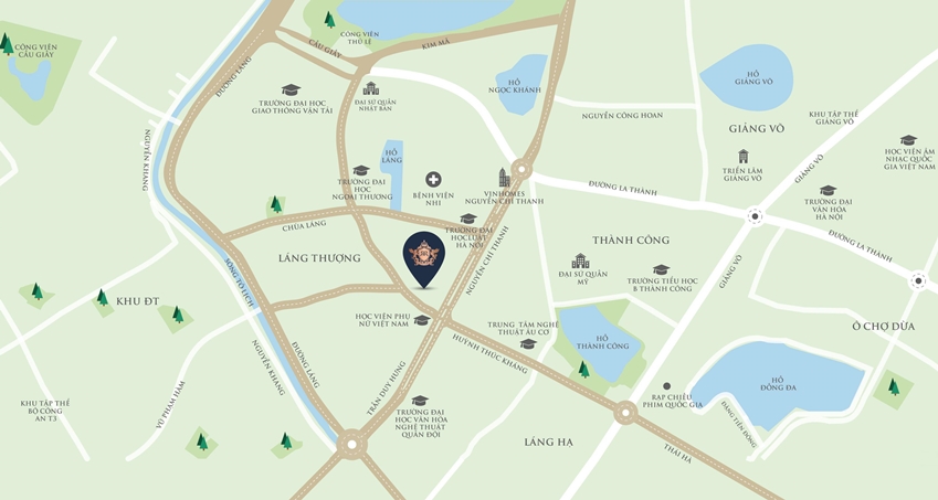 Trong bán kính 3km, các cư dân của dự án có thể dễ dàng tiếp cận với các trường học, bệnh viện, trung tâm thương mại, khu vui chơi giải trí hàng đầu khu vực như Trường Phổ thông thực nghiệm, Đại học Luật Hà Nội, Đại học Ngoại Thương, Học viện Ngoại Giao, Bệnh viện Nhi trung ương, Bệnh viện phụ sản Hà Nội, Bệnh viên Giao thông vận tải, Vincom Nguyễn Chí Thanh, Trung tâm chiếu phim quốc gia, công viên Indira, hồ Ngọc Khánh, hồ Láng, hồ Thành Công,…